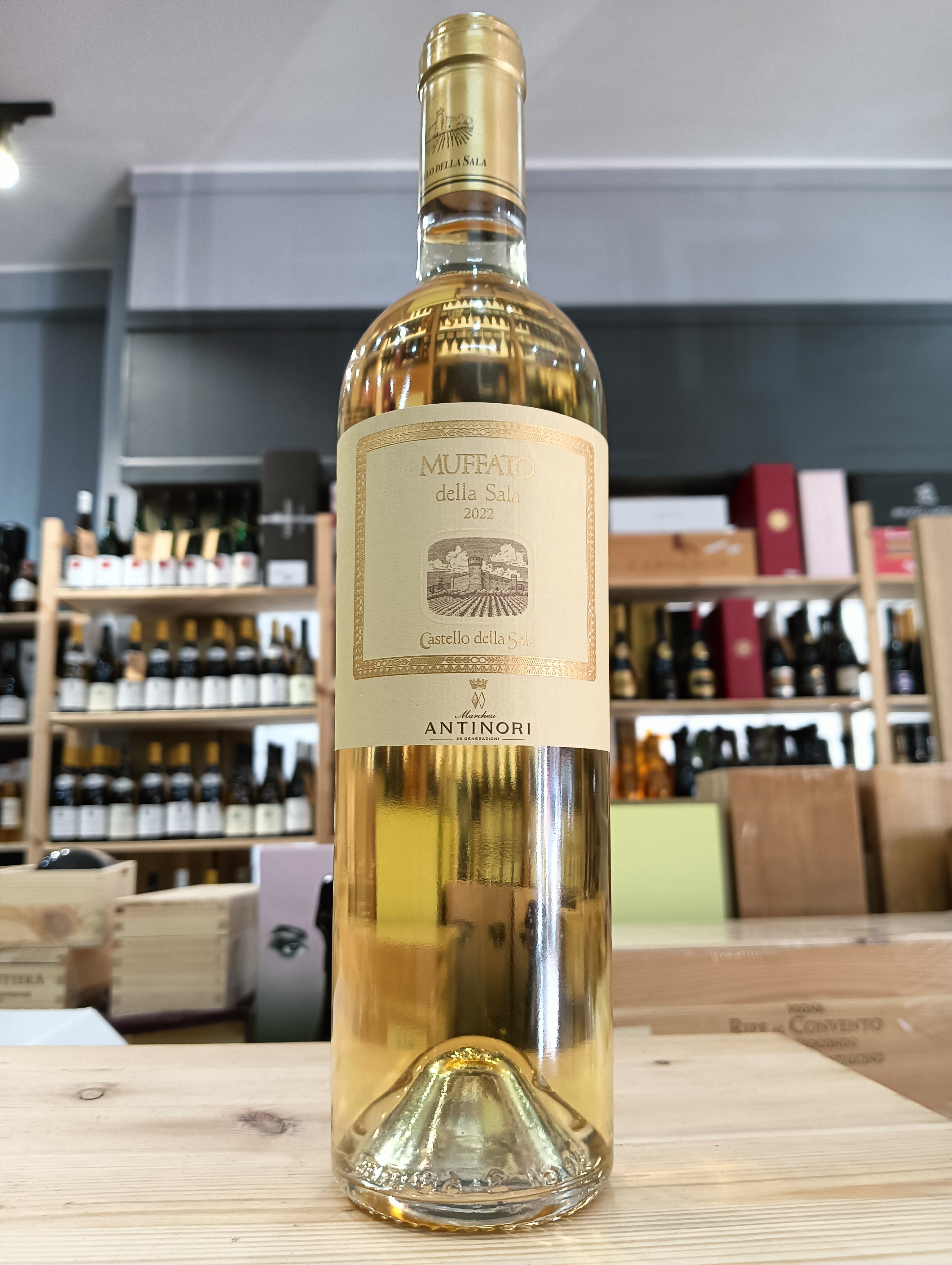 prodotto con uve botritizzate raccolte a fine ottobre - inizi di novembre, per dar modo alle nebbie mattutine di favorire lo sviluppo della Botrytis Cinerea o “muffa nobile” sui grappoli conferendo al Muffato della Sala un gusto armonico e inconfondibile.